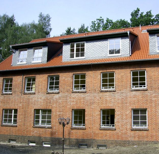 Objektbeschreibung: Umbau und Erweiterung von ehemaligen Kasernengebäuden im Nienburger Ortsteil Langendamm zu einer psychiatrischen Betreuungseinrichtung mit 61 Betten.